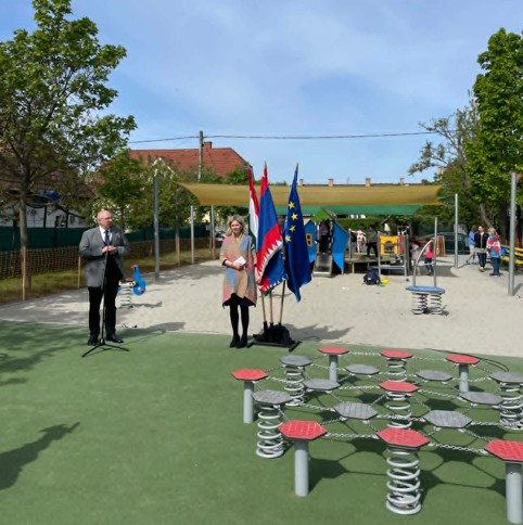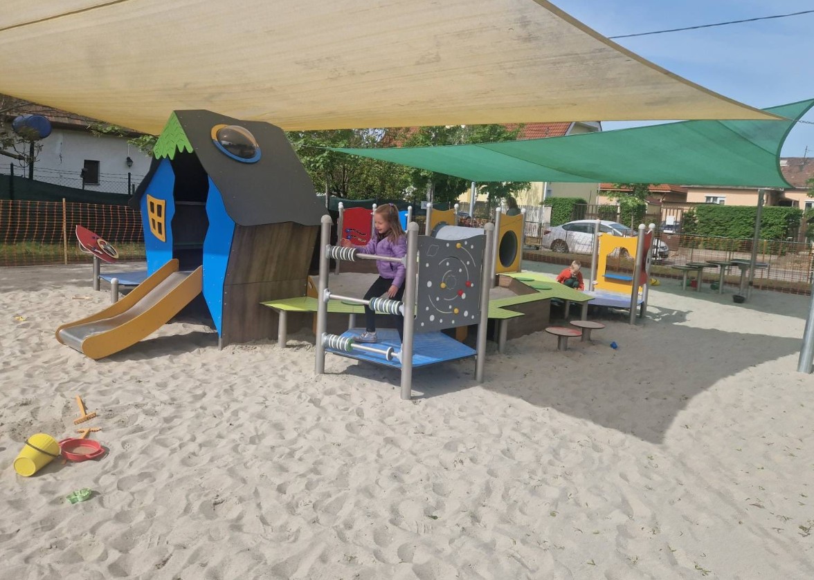 A projekt részeként egy akadálypályát is létesítettünk, amelyet elsősorban a fiatalabb korosztály tagjai tudnak használni. Ezen kívül egy komplex homokozós játszóvárat, álló libikókát, rugós forgó játékokat, homokozó asztalkát is kihelyeztünk. Sokan örülnek annak, hogy emellett egy egyensúlyozó lépegető eszközzel is bővült a játszótér.