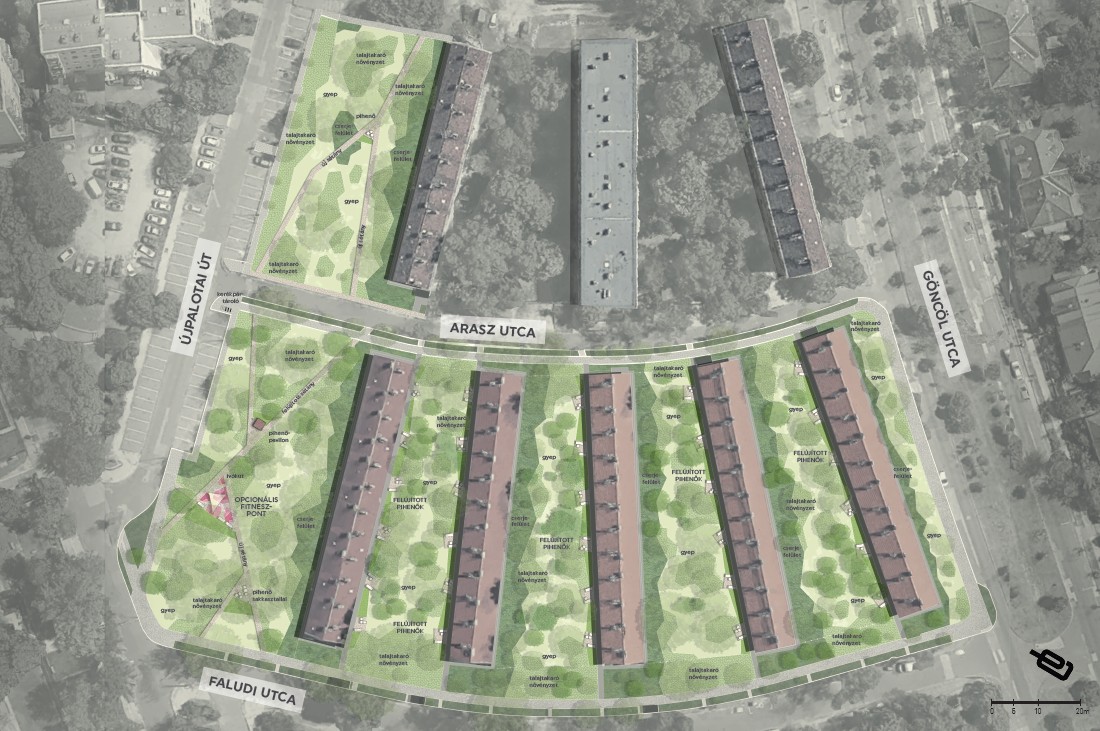 A területen a most tervezett fejlesztés eredményeképp mindösszesen 15 000 négyzetméteren szépülhetnek meg a lakóépületek közötti és melletti területek.