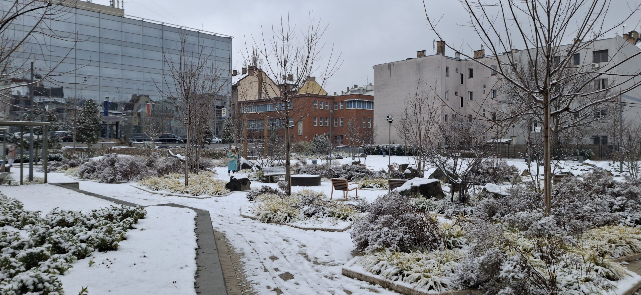 Januárban virtuális bejárásra invitáltuk Önöket a Thurzó parkba. Varázslatos hangulatot találhatott, aki havas időben a Thurzó parkban járt – ezt mi is megörökítettük. A Thurzó park 2023 májusában készült el egy egykori parkoló helyén nagyszabású zöldterületi fejlesztés keretében. A Thurzó utca-Hegedűs Gyula utca-Ipoly utca-Visegrádi utca által határolt területen 12000 növényt, 77 fát ültettünk és 1800 négyzetméter gyepfelületet alakítottunk ki. A csaknem 5000 négyzetméterű park átalakulása eredményeképp nagyszerű pihenőpark született, az átalakítás eredményét Ilyen volt – ilyen lett rovatunkban is bemutattuk korábban. Tavaszi és nyári időszakban is hangulatos a Thurzó park, az év nagy részében így néz ki – képes összefoglalónkban egy évesen mutattuk be Önöknek a helyszínt. Érdemes megnézni a parkot téli öltözetben, visszatekintve az év elejére.