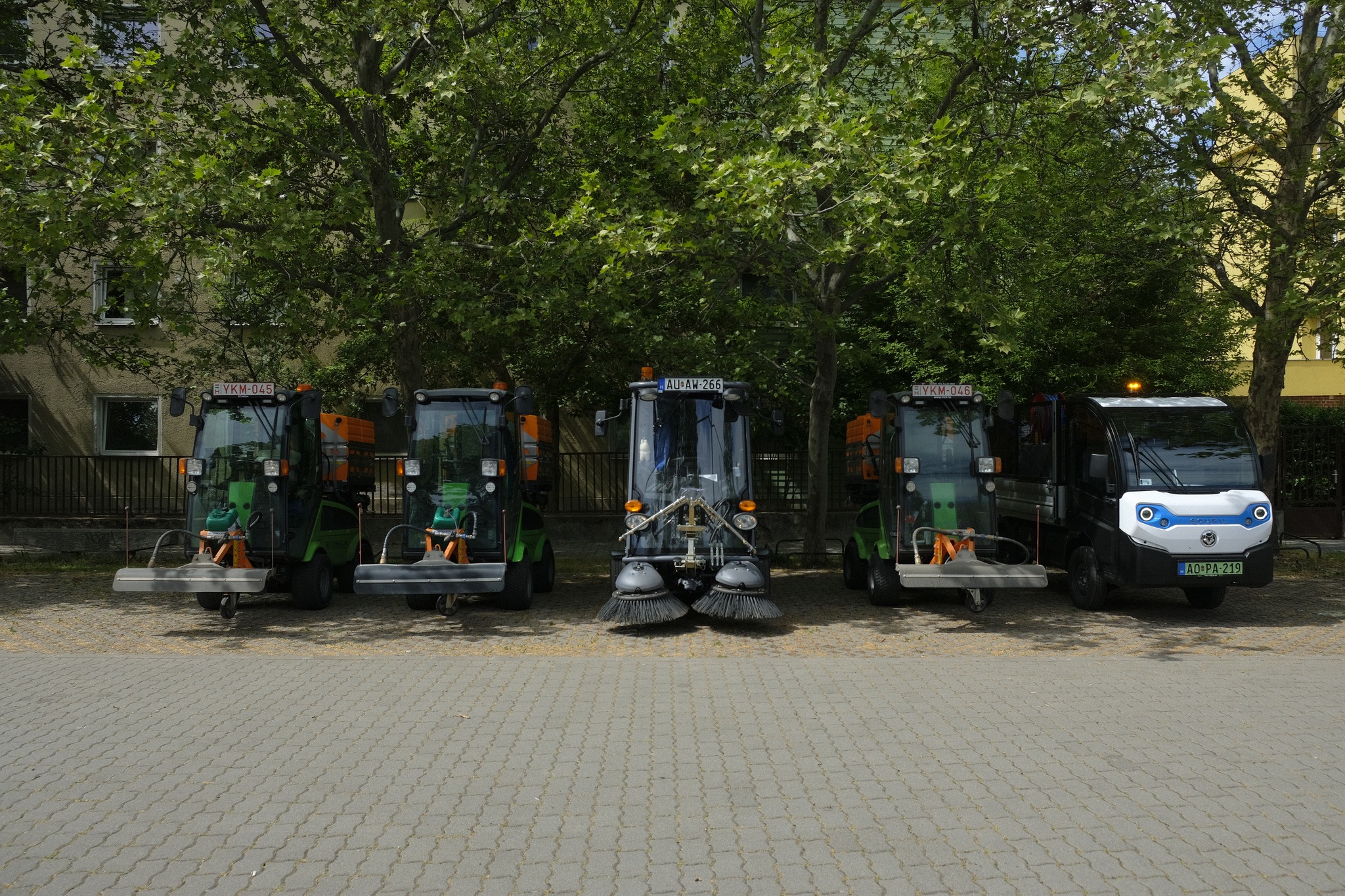 A köztisztasági feladatok ellátását április végétől négy saját tulajdonú takarítógép segíti. Ezek közül három gép magasnyomású vizes adapterrel felszerelve üzemel, míg két gép üzemel kifejezetten seprési feladatok ellátására. Az idei évben további egy gépre szerelünk fel vizes adaptert annak érdekében, hogy mindhárom gépet bevethessük azonos feladatokra.