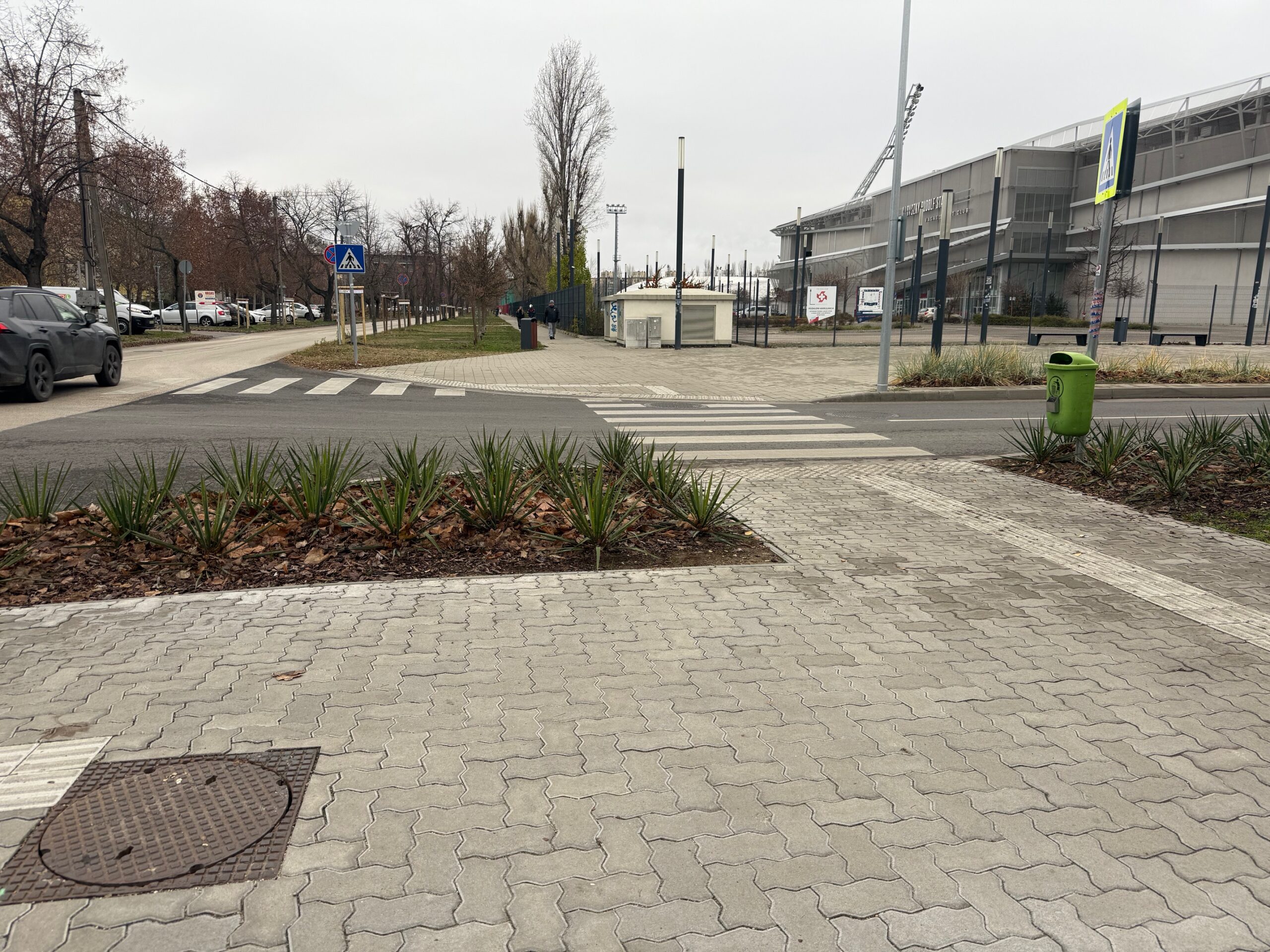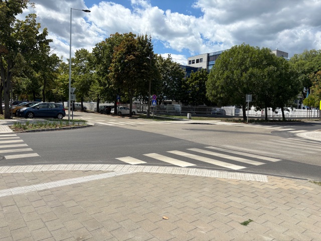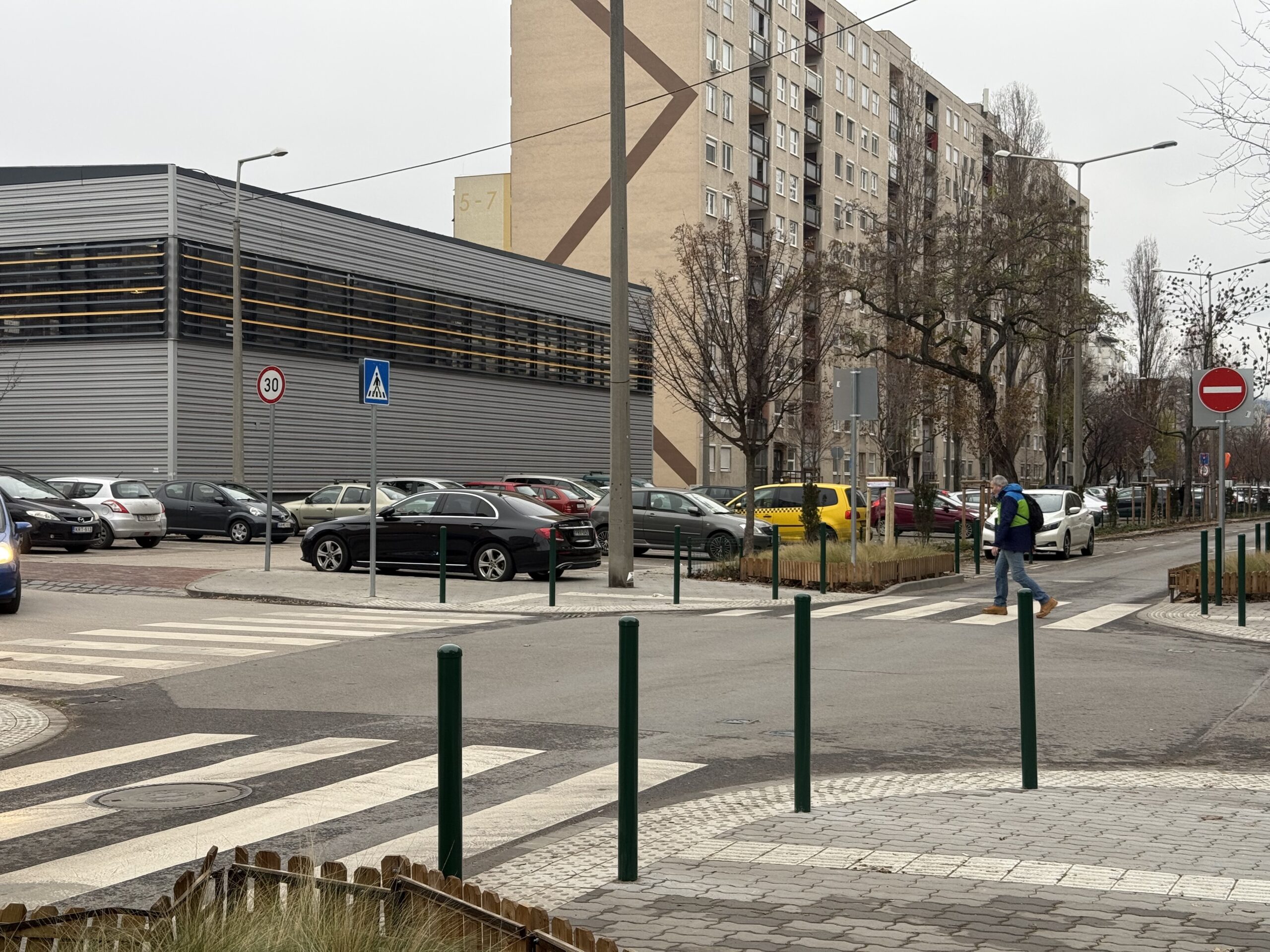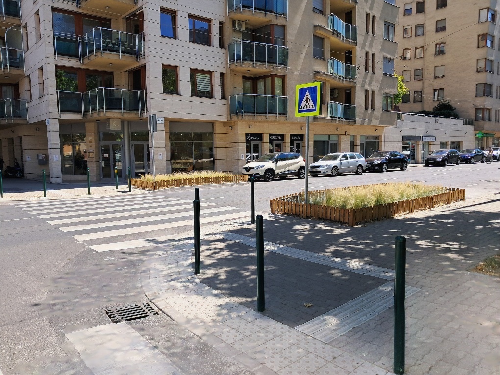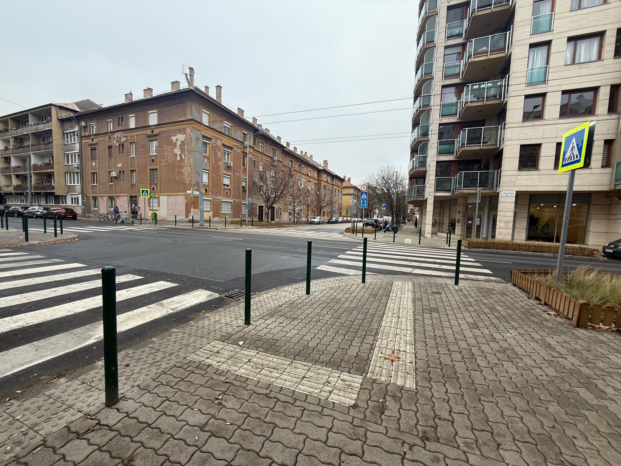 Ezen a helyszínen is a két utca kereszteződésében mindegyik oldalról érkezők számára gyalogátkelőhelyen keresztül lehet áthaladni az úttesten. A kivitelezés nyár közepére készült el.