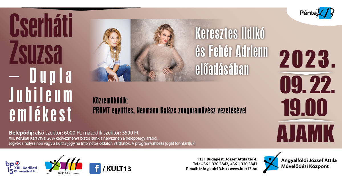 Jegyek a helyszínen vagy a kult13.jegy.hu internetes oldalon válthatók.