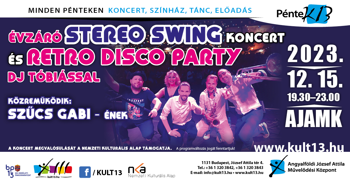 PénteK13 - Évzáró Stereo Swing koncert és Retro Disco Party DJ Tóbiással