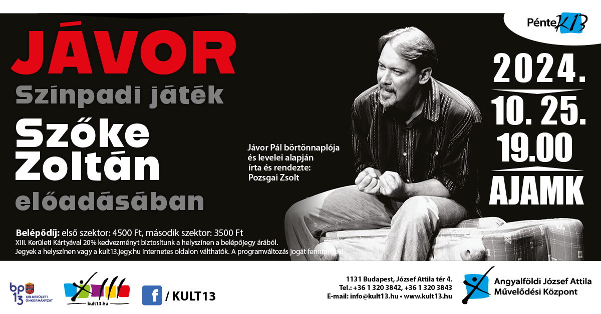 PénteK13 – JÁVOR – Színpadi játék Szőke Zoltán előadásában