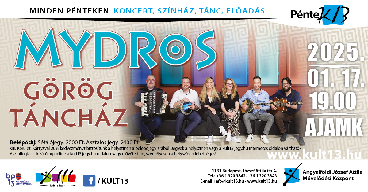 Jegyek a helyszínen vagy a kult13.jegy.hu internetes oldalon válthatók.