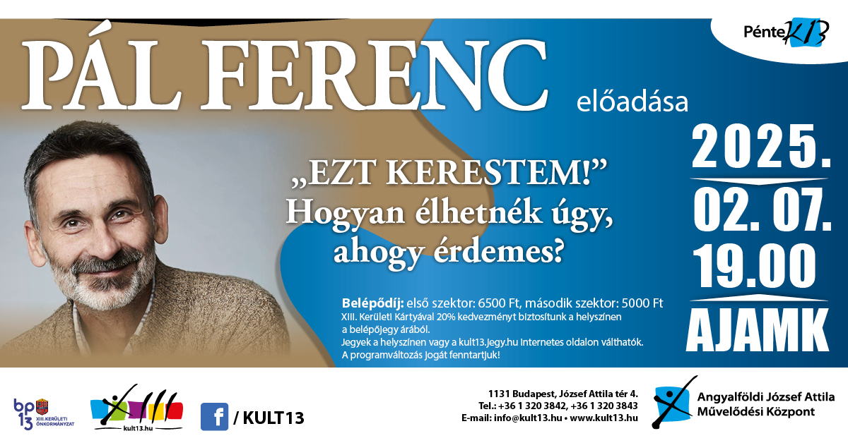 PénteK13 – Pál Ferenc előadása: Hogyan élhetnék úgy, ahogy érdemes?