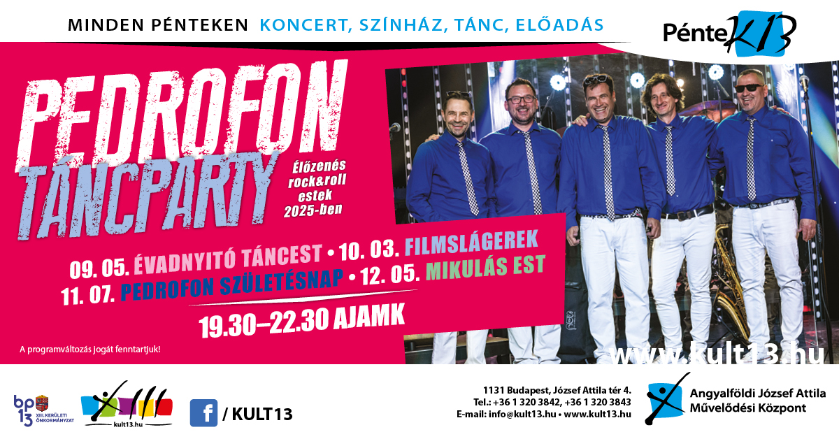 Jegyek a helyszínen vagy a kult13.jegy.hu internetes oldalon válthatók.
