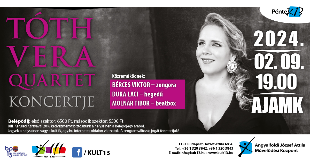 Jegyek a helyszínen vagy a kult13.jegy.hu internetes oldalon válthatók.